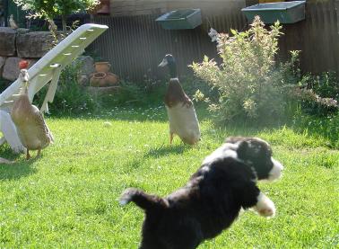 Enten auf dem Grundstück und wer fällt in die Entenkacke?