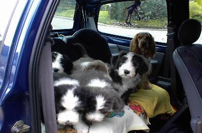 Ein Ausflug mit den Welpen. Autotraining wird bei uns gern gemacht.